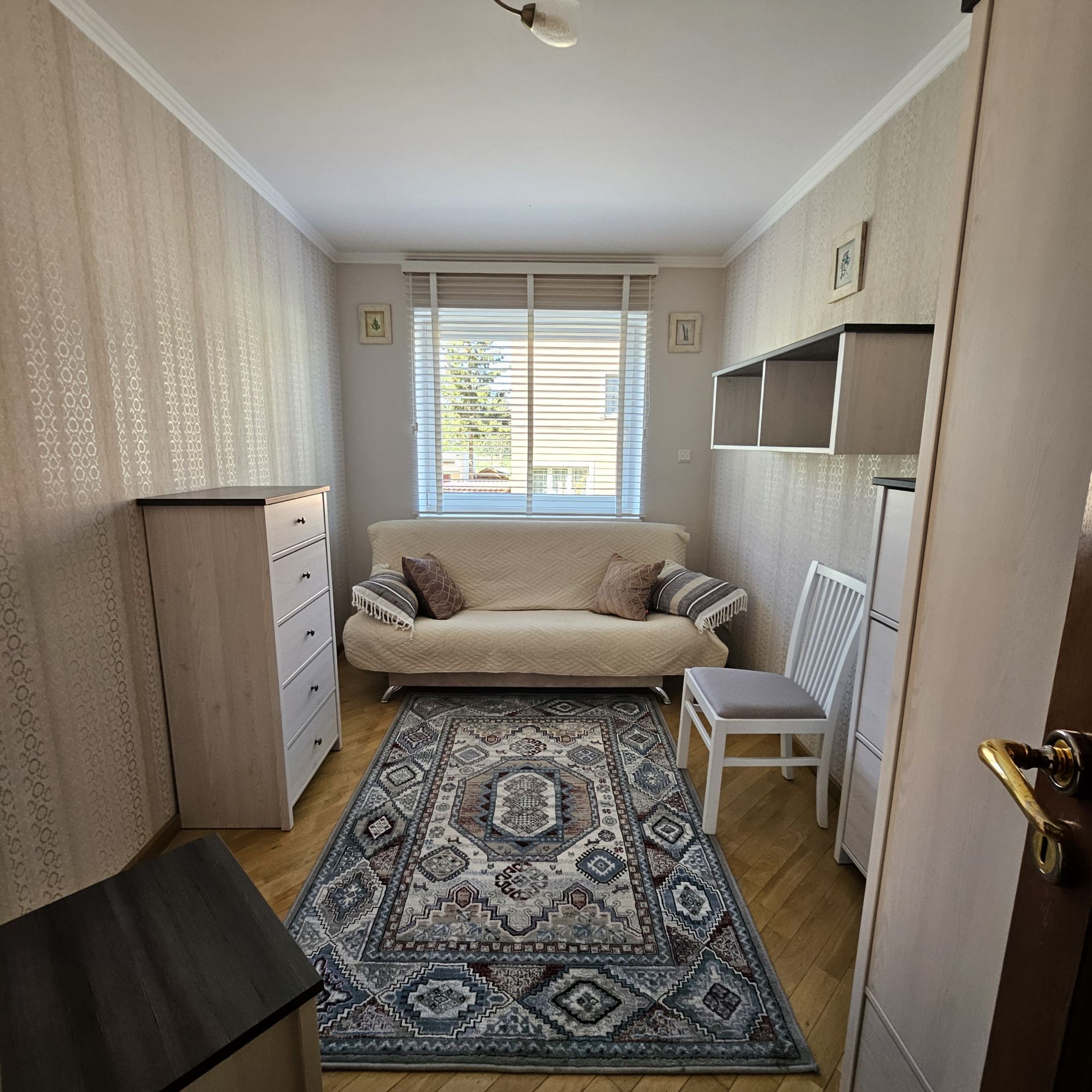 -przedpokój:szafa,odkurzacz,żelazko,deska do prasowania,suszarka do ubrań,środki czystości.