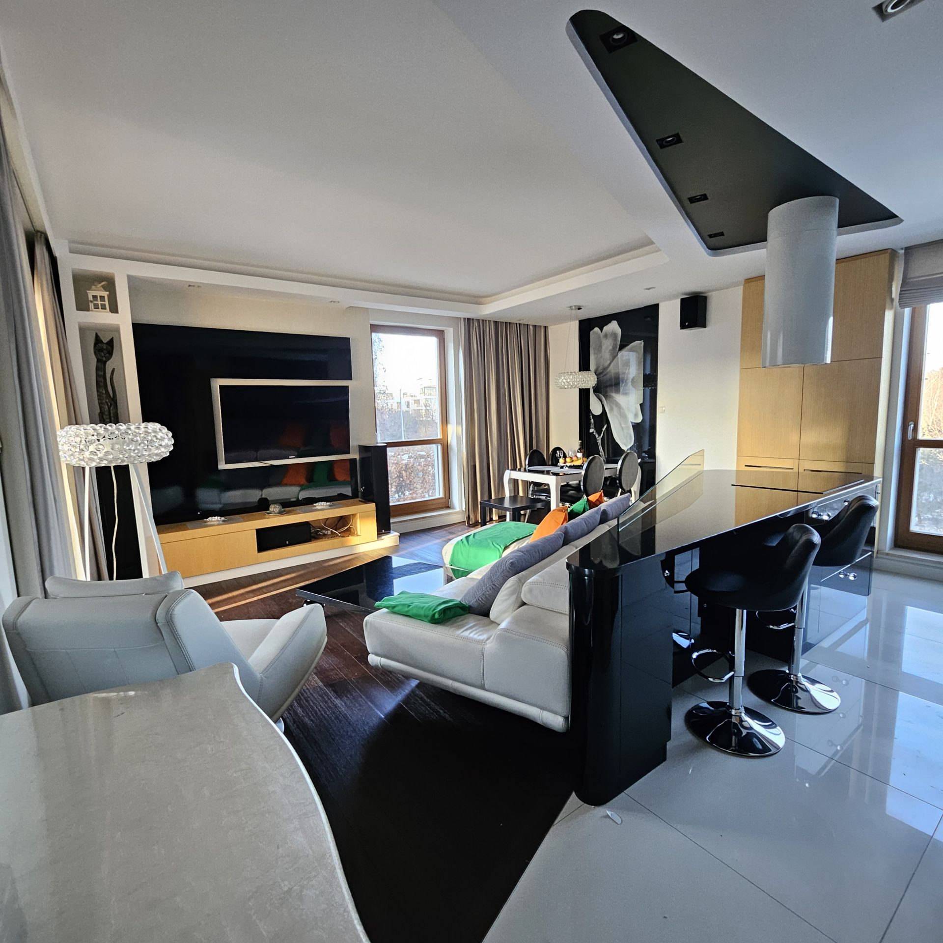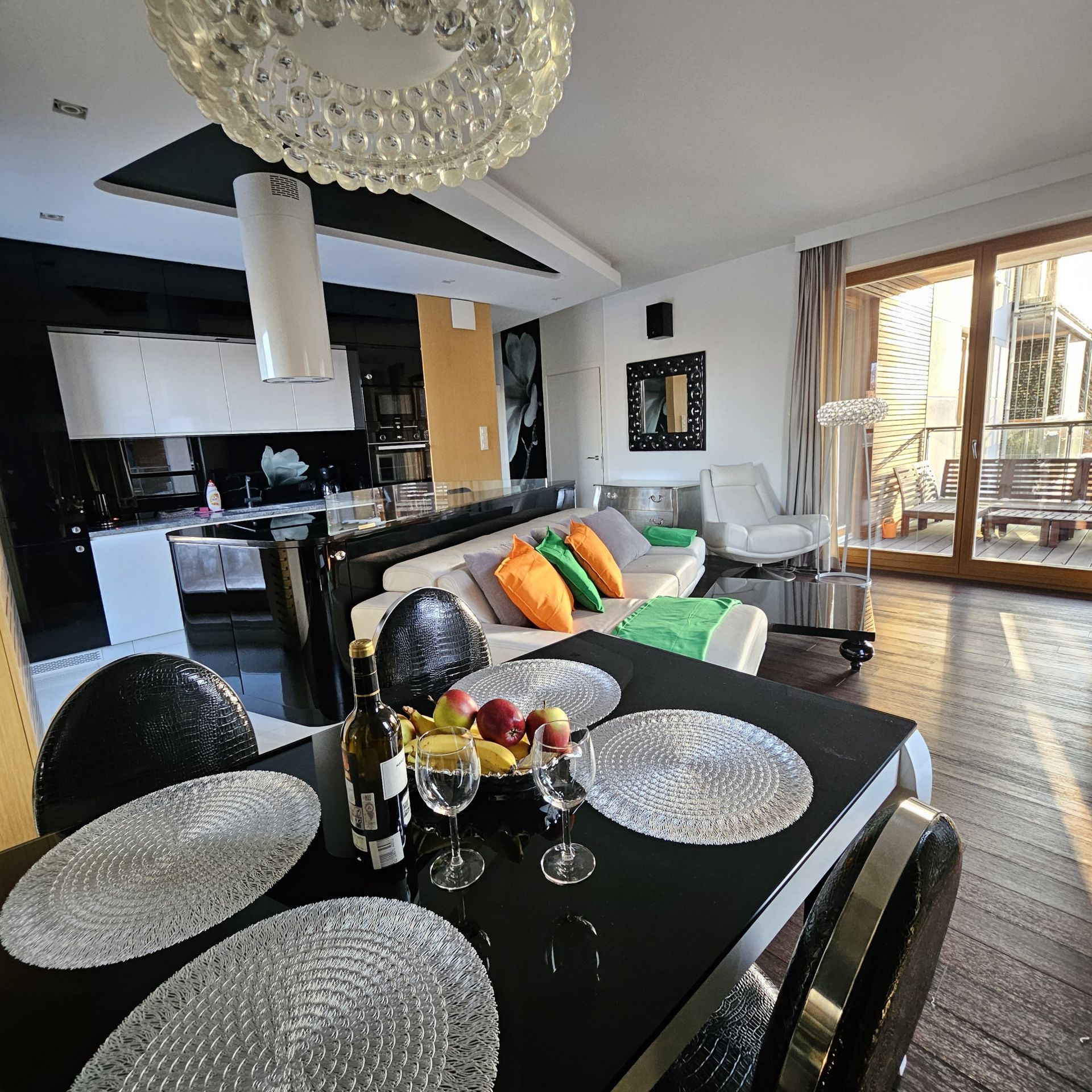 Mieszkanie jest w stanie idealnym wykończone pod klucz, gotowe do zamieszkania i w pełni wyposażone w nowy sprzęt i meble ( zmywarka, piekarnik, lodówka, mikrofalówka, płyta indukcyjna, czajnik oraz wszelkie przypory kuchenne, a także pralka, odkurzacz, żelazko,2x telewizor, stolik i krzesła tarasowe itp.)