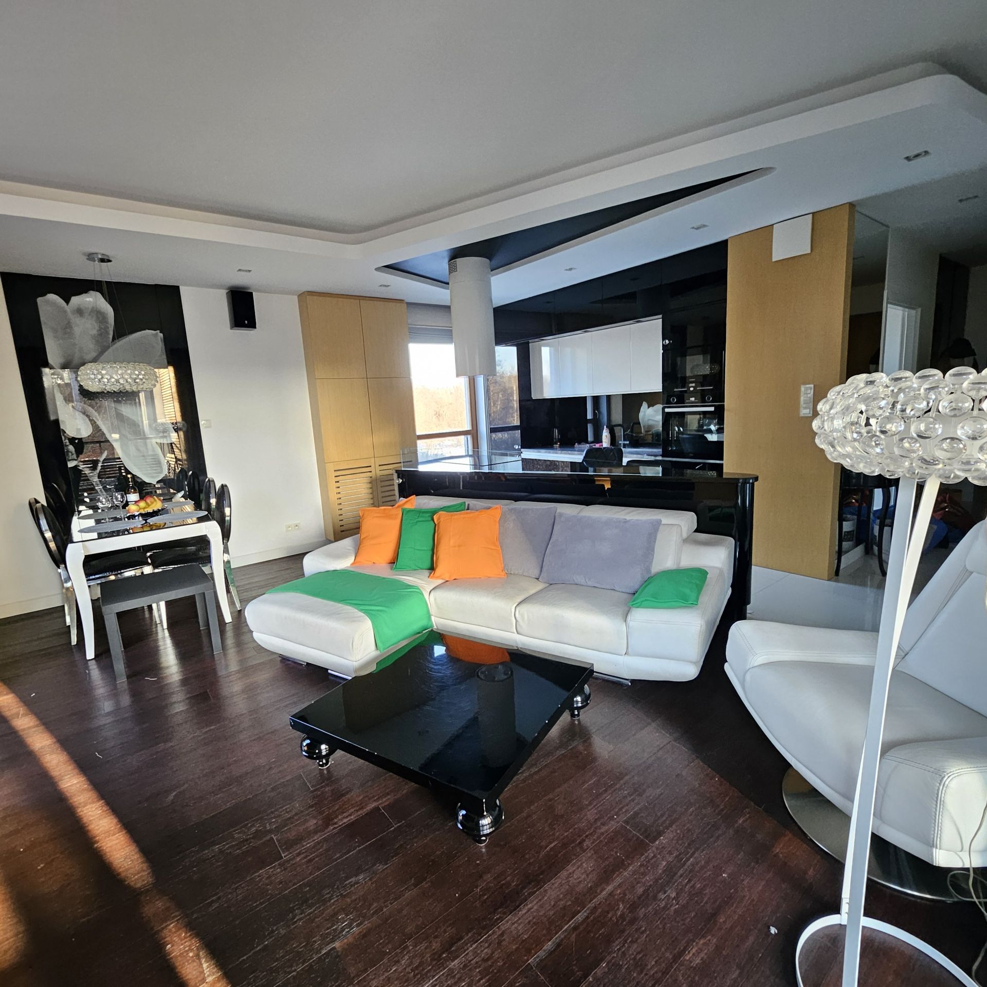 · salonu z aneksem kuchennym z wyjściem na balkon,